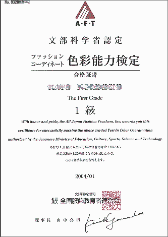 運転免許でも、免許証をもらえます。 では、色彩検定はどうなのかな? どうなのでしょ? …知りたいですか? え?知りたい? うーん、どうしょっかな? だって、もったいないんだもの(笑) でも、あなたの熱い視線が痛いので、答えてみます。 色彩検定も証明書あります。 それも2つも! (ほら、喜んで!(笑)) 色彩検定に合格すると「合格証書」と「資格証」がもらえます。 合格証書は、大きめなB5くらいの証書です。 文字通り、合格したことを証明してくれます。 で、資格証は、カードサイズのプラスティック製のカードです。 (なんだか回りくどい日本語(笑)) これは、あなたを「色彩コーディネーター」であることを証明してくれるんです。 微妙なニュアンスの差は分かりましたか? 分からない人は、下の写真をみてください。 ファッションコーディネート色彩能力検定と書いてあります。 が…今は「色彩検定」が正式名称になったので、表記が変っていることでしょう。 ちなみに1級です。 うしし(笑) 左のカードは、色彩コーディネーターの資格証です。 カードサイズなので持ち歩くことが出来ます。 で、僕が好きなのは、資格証です。 なぜなら、財布や定期入れに入れておけばさりげなく自慢できるからです(笑) 実際僕も、以前やりました。 ジュースを買うときに友達にワザと分かるように見せたり。 こんな楽しみ方も色彩検定にあったんですね☆ヽ( ´ ∇ ` )ノ わ~い♪ PR 色彩検定 色彩検定テクニック 色彩検定講座